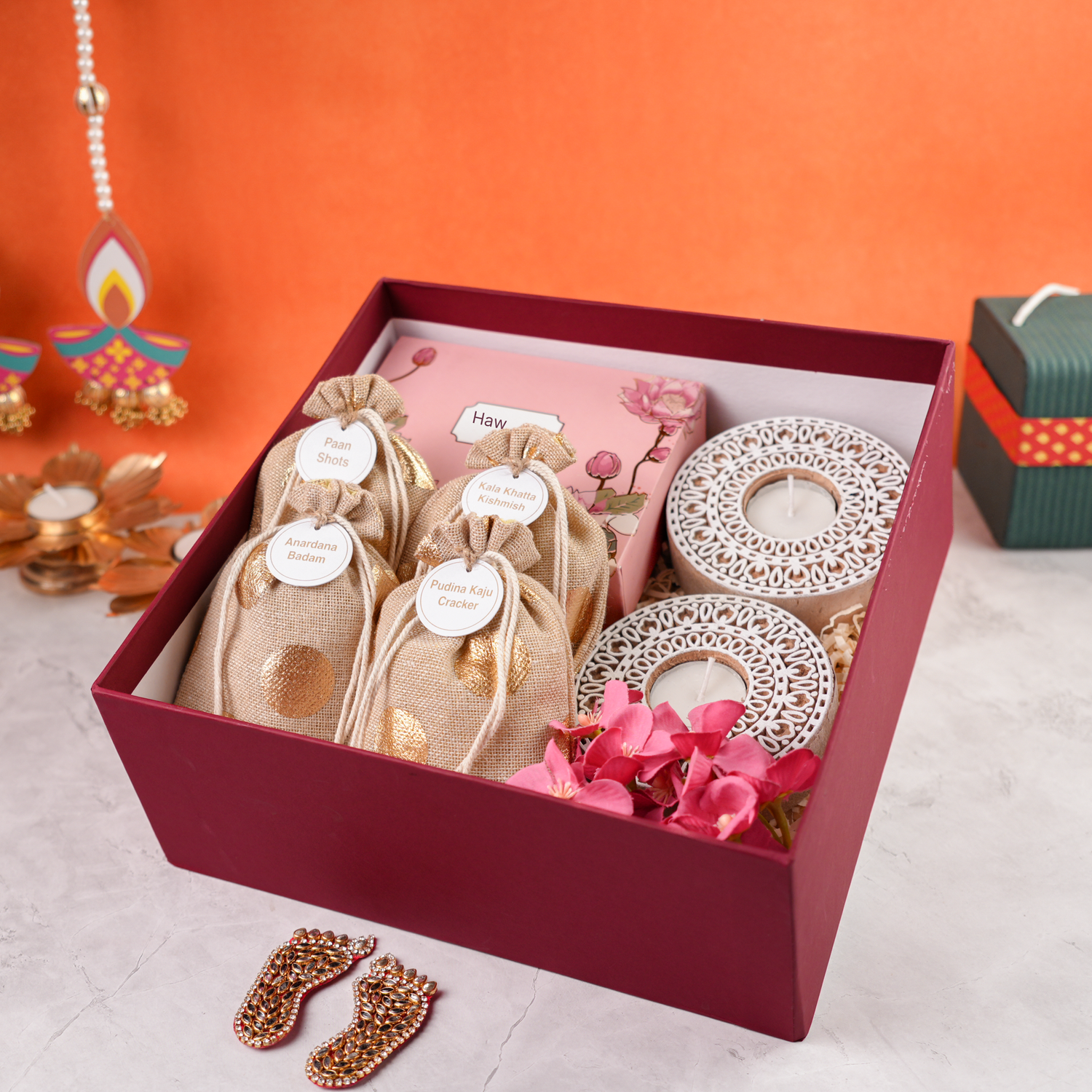 Our collection features beautiful keepsake gift boxes inspired by artisanal patterns, designed to make gifting in Gurgaon more joyful, elegant, and memorable. Perfect for corporate gifting, festive celebrations, and personal occasions across Gurgaon and Delhi NCR, these premium boxes add a refined touch to every hamper and make every gift feel truly special.